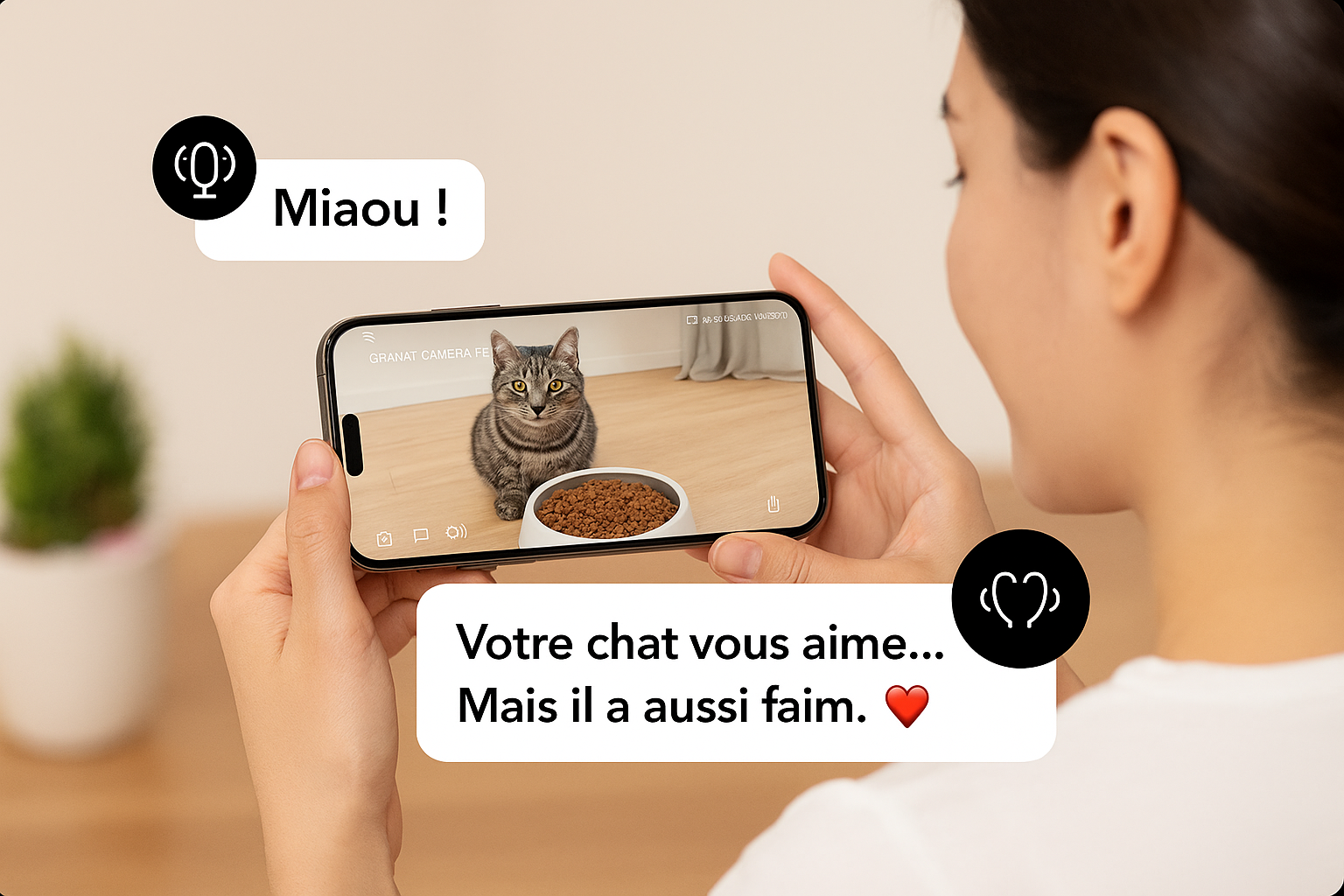 Avec Feliney Feed, surveillez votre animal de compagnie à distance grâce à une caméra haute définition et à la vision nocturne, offrant une tranquillité d'esprit totale.