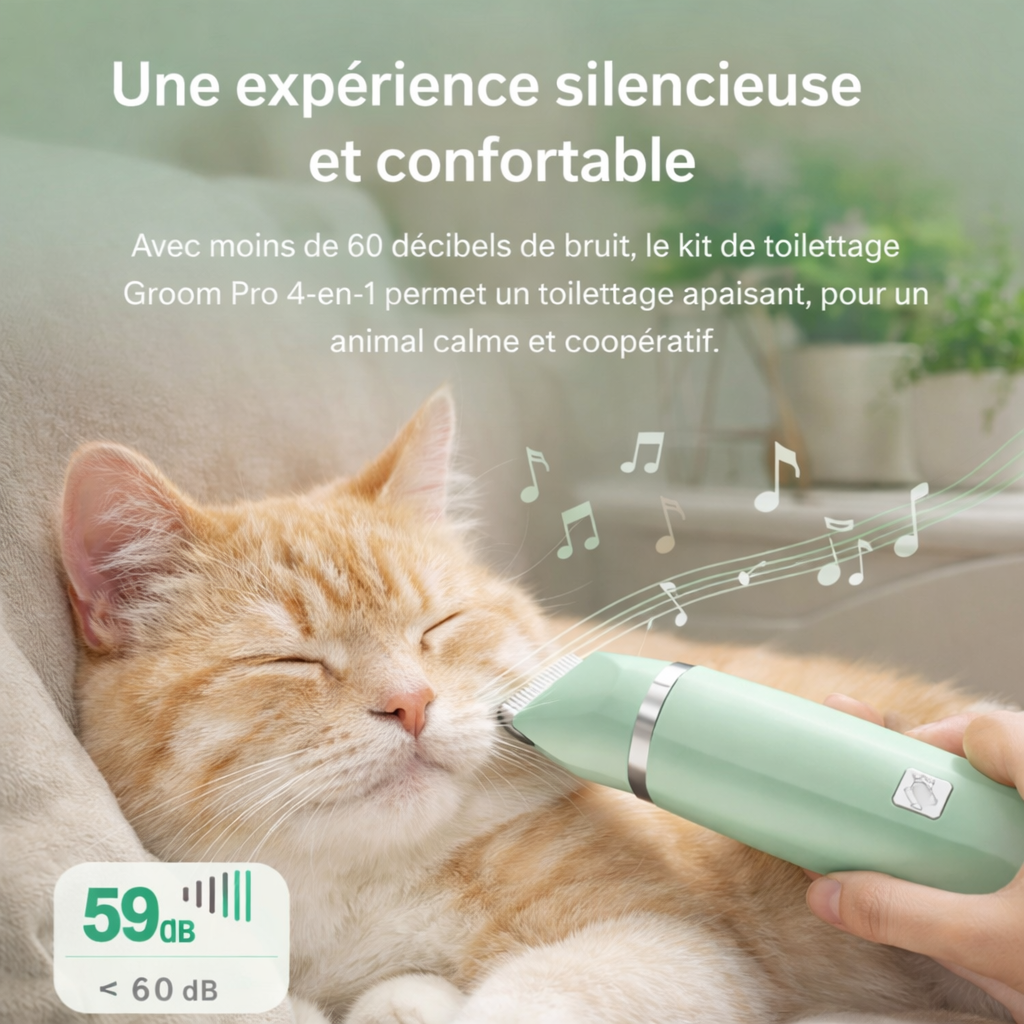 Absolument, les tondeuses pour animaux de compagnie Groom Pro 4-en-1 produisent moins de 60 décibels de bruit, garantissant ainsi que votre animal se sente détendu et coopératif pendant le toilettage. Elles offrent une expérience de rasage agréable pour votre animal.