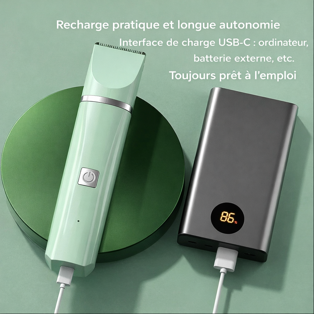 Grâce à sa conception rechargeable et sans fil, le Groom Pro 4-en-1 offre une liberté de mouvement totale lors du toilettage de vos animaux. La batterie intégrée permet une utilisation continue pendant 60 minutes après seulement 5 heures de charge.