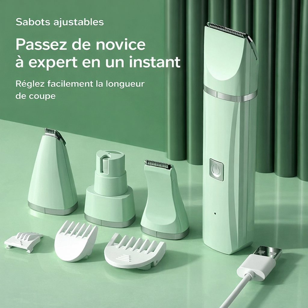 Le Groom Pro 4-en-1 est un ensemble professionnel d'outils de toilettage électrique pour animaux de compagnie, offrant 4 têtes différentes pour une polyvalence maximale. Pratique pour les zones sensibles et les parties du corps variées de vos animaux de compagnie.